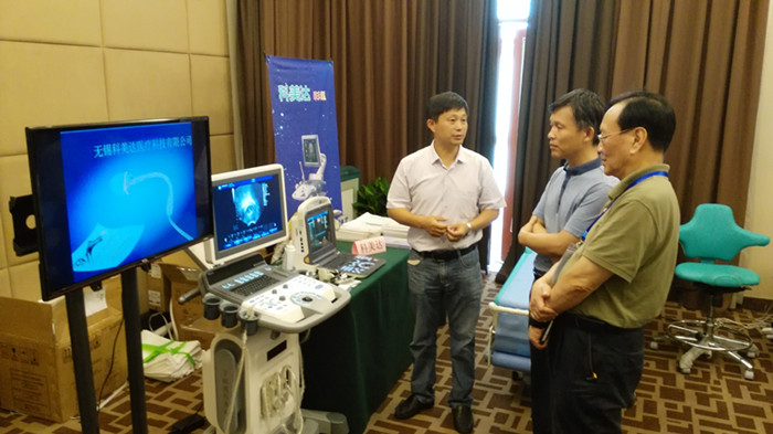 國家衛計委繼教中心楊爰平主任放棄休息,全天參加了學術研討、遠程介入超聲演示觀摩等活動,加深了對超聲新技術的理解,從而更好的領導超聲能力建設項目的實施。晚上楊主任不顧一天的勞頓,在會場召開了部分演講專家的座談會,王金銳、錢林學、劉吉斌、毓星 等多位專家到科美達展位進行參觀,并就超聲在專科領域的信用討論,充分肯定了科美達公司這幾年在專科領域的成就,勉勵科美達保持在婦科超聲領域的研發、臨床優勢,引領中國超聲走出一條新路。